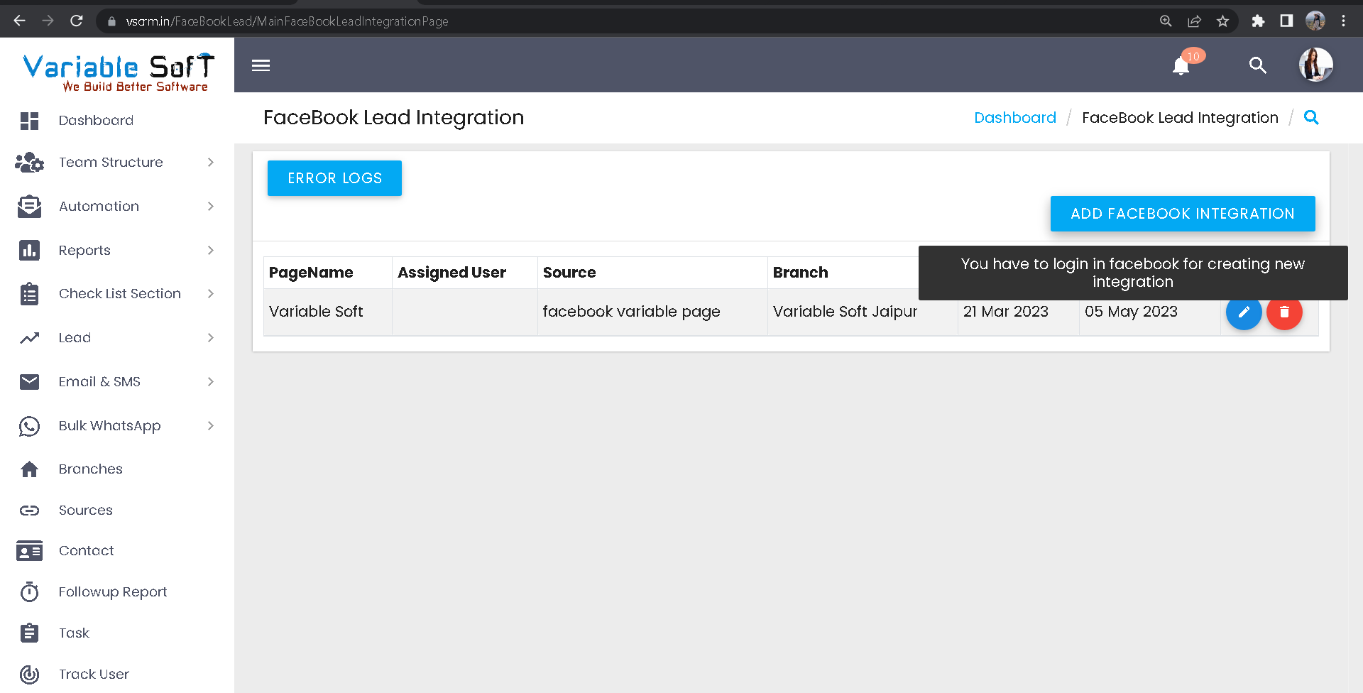 Connect Variable Soft CRM to Facebook to protect your critical leads. You can easily manage and maintain your Facebook leads with this robust CRM system. Respond to queries as soon as possible, automate lead capture. To track lead performance and optimise your plans. You can ensure that no lead falls through the cracks, nurture strong client relationships, and maximise conversions by connecting Variable Soft CRM with Facebook. Use this integration to maximise the effectiveness of your Facebook lead management activities.